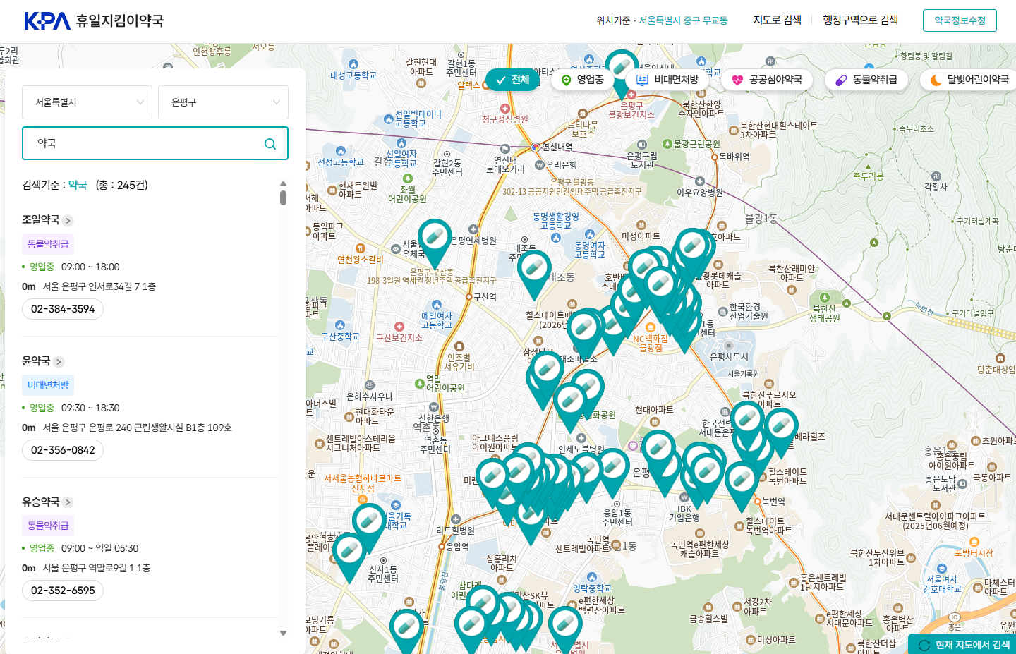 네이버 지도, 카카오맵, 구글맵에서 ‘은평구 24시 약국’ 검색이 가능하지만 주의할 점이 있습니다.