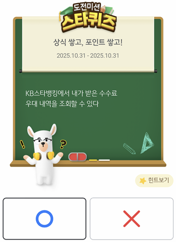 2025년 10월 31일, KB 스타뱅킹에서 퀴즈를 풀고 포인트를 적립할 수 있는 기회를 누리세요.